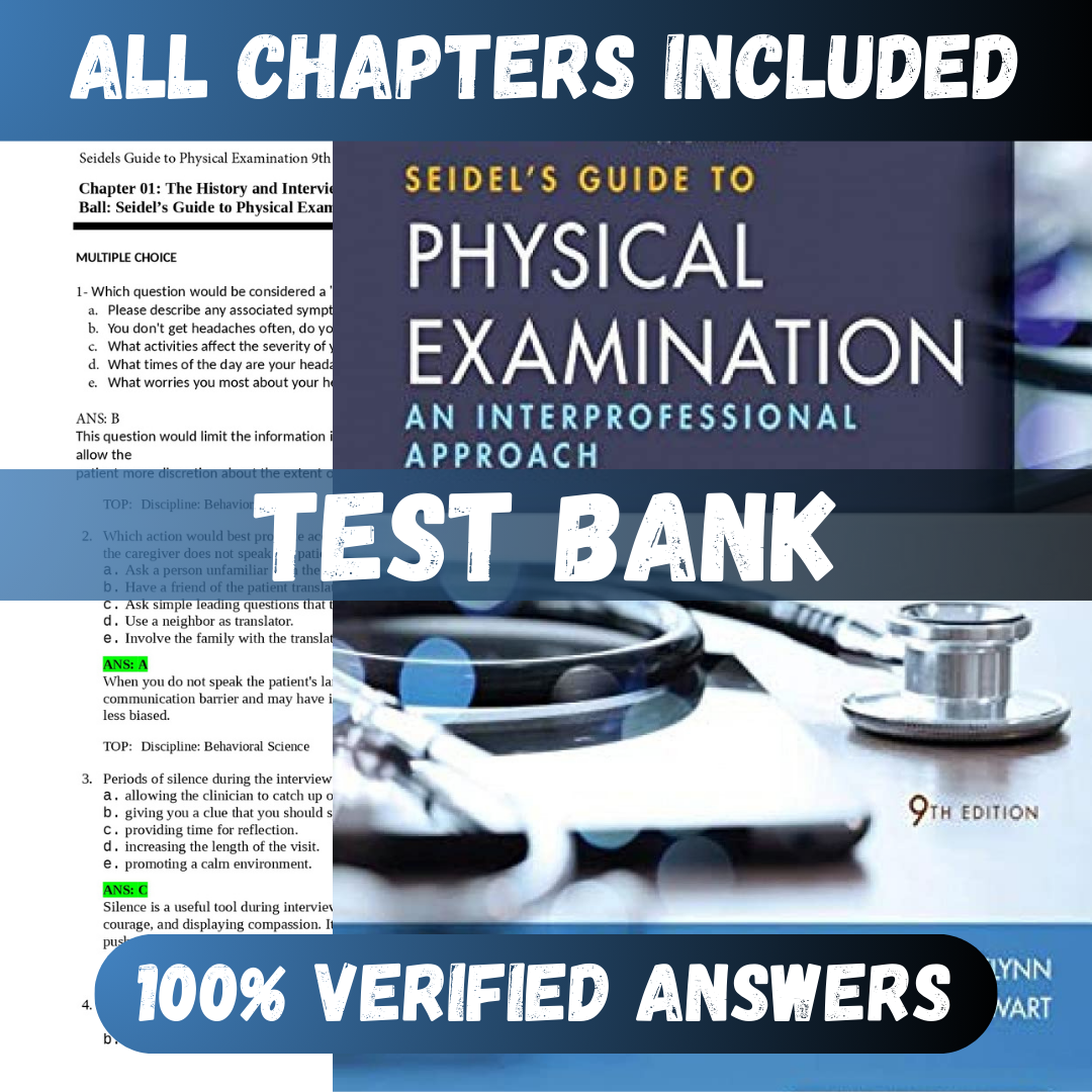 Test Bank Seidel’s Guide to Physical Examination 9th Edition (Ball, 2018)