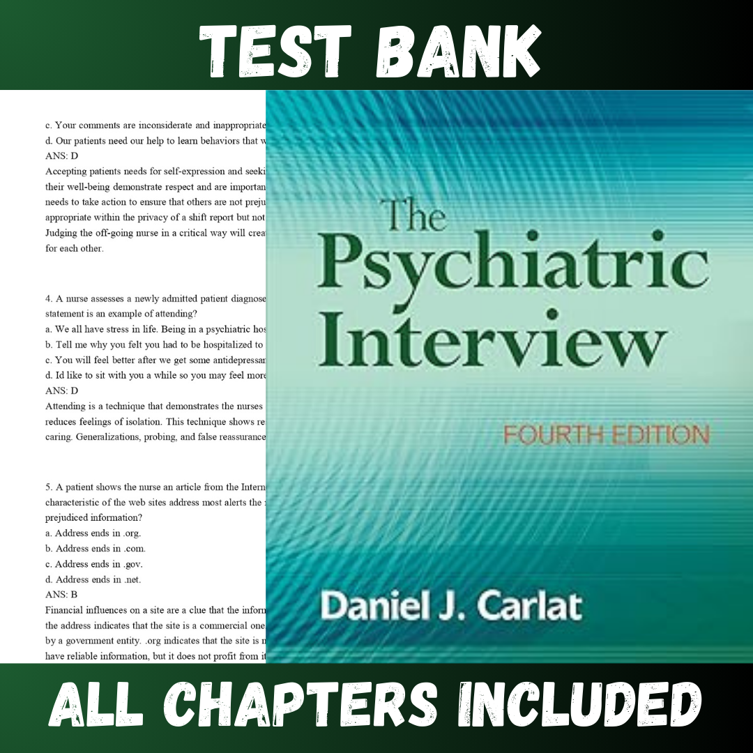 Test Bank – The Psychiatric Interview 4th Edition by Carlat